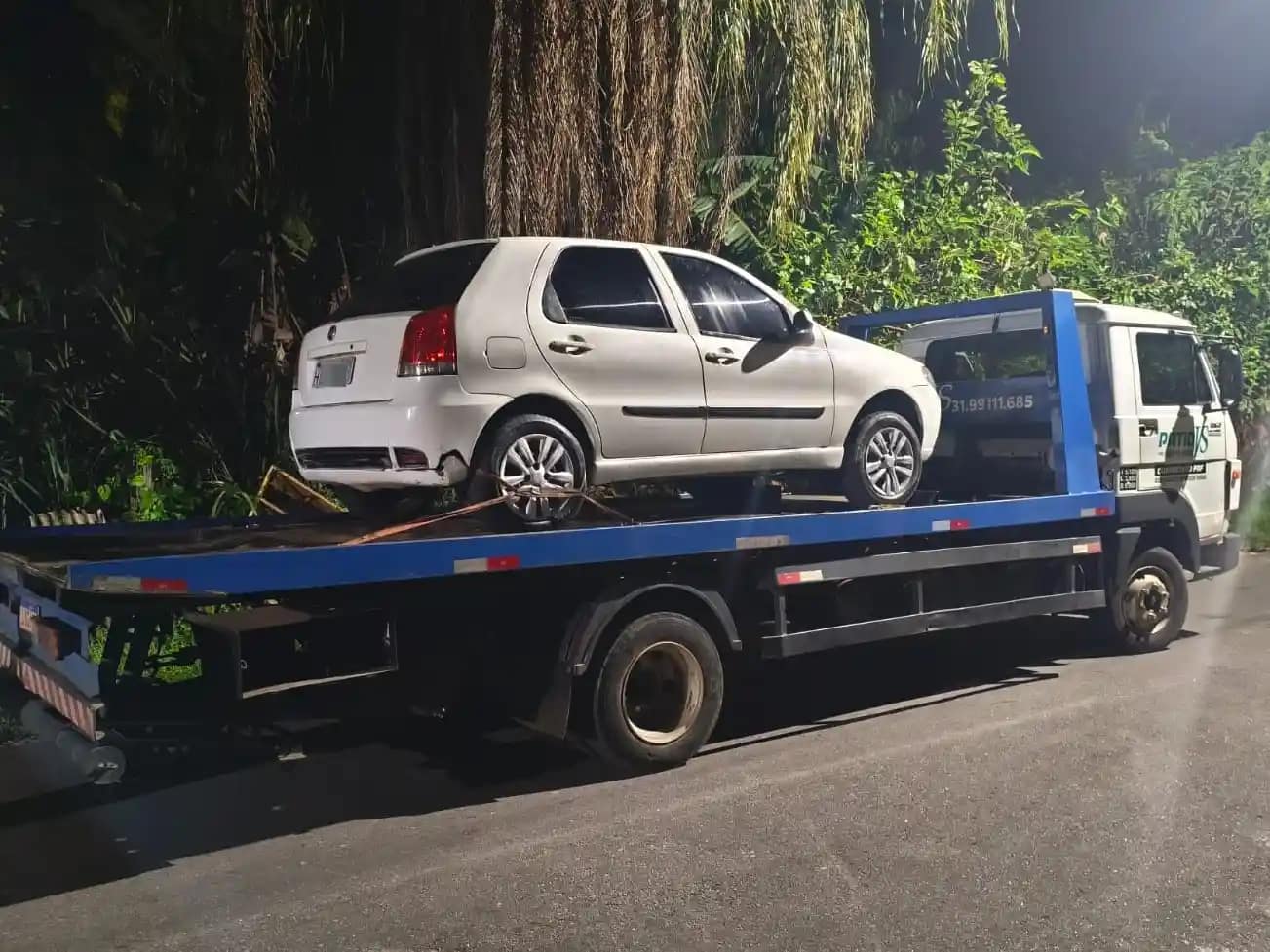 O carro foi removido ao pátio credenciado, e os autos de infração referentes às irregularidades constatadas foram devidamente lavrados.