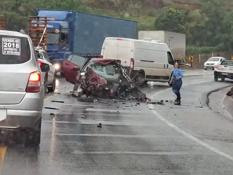 Um grave acidente de trânsito registrado na manhã desta quarta-feira (21) resultou na morte de um homem na BR-381, em Nova Era. A colisão entre um carro de passeio e um caminhão ocorreu no quilômetro 310 da rodovia, na altura da Vila São Sebastião, trecho conhecido pelo elevado número de ocorrências.