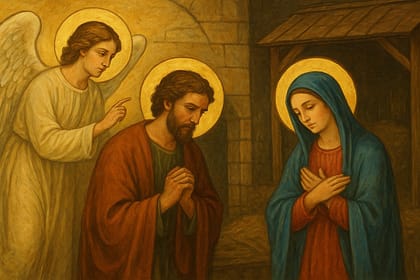 Evangelho: Mateus 1,18-24 18A origem de Jesus Cristo foi assim: Maria, sua mãe, estava prometida em casamento a José, e, antes de viverem juntos, ela ficou grávida pela ação do Espírito Santo. 19...